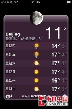苹果的操作系统一向以界面时尚、动态效果出色而举世闻名。iPhone 3G手机内置的是MAC OS X Mobile操作系统,在界面表现能力上很好的继承MAC OS X的一些优点,加上多点触摸技术的辅助,在操作体验上iPhone 3G手机已经达到了业内领先地位。