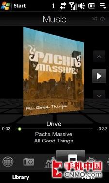 HTC Touch HD的Music标签功能比较阳春,但可以显示专辑封面,也可以通过手指滑动操作。