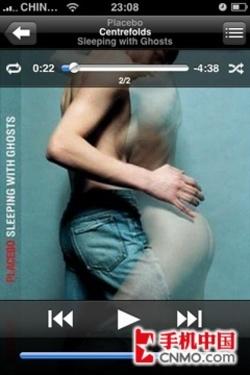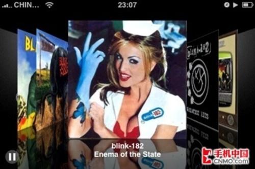 在播放音乐的时候,专辑封面会显示在手机屏幕上,点击右上角的列表按键则能够查看该张专辑的音乐内容,点选曲目即可换曲进行欣赏。在竖屏模式播放音乐,iPhone只会显示一张专辑的封面;但当用户将机身旋转为横屏模式后,则能看到多首歌曲的封面以3D界面的形式显示出来,用手指左右的滑动能够进行歌曲的选择,点击相应的专辑封面则会显示该张唱片的曲目,点击相应歌曲即可开始播放。