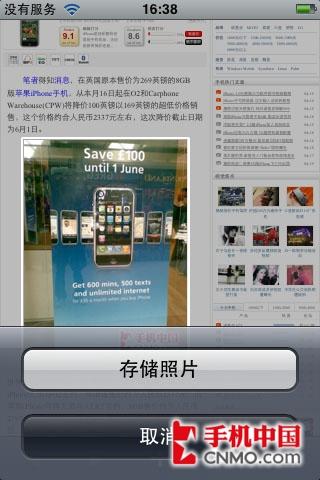 iPhone 3G手机自带的图片浏览器读取能力非常出色!我把一张1000万像素单反相机拍摄的原片同步到iPhone中,用其内置的图片浏览器查看基本感觉不到延时,读取的速度非常快,左右拖动便能够切换相片的显示,用两个手指还能够进行放大/缩小的处理。当浏览横屏拍摄的照片时,所显示的照片会自动的旋转适应。