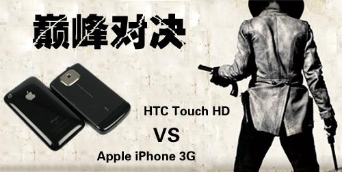 HTC终于发布了Touch系列的终极之作Touch HD(参数 报价 文章 热评)手机,该机凭借3.8英寸WVGA(800x480像素)分辨率屏幕和500万像素拍照等出色硬件配置成为目前最抢眼的PPC手机。与此同时,由于其拥有超大的屏幕、加之触控的操作方式,所以常常被拿来同苹果iPhone进行对比。下面就请看由手机中国策划的HTC Touch HD与iPhone 3G(参数 报价 图片 文章 热评)惊心动魄的巅峰对决。