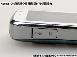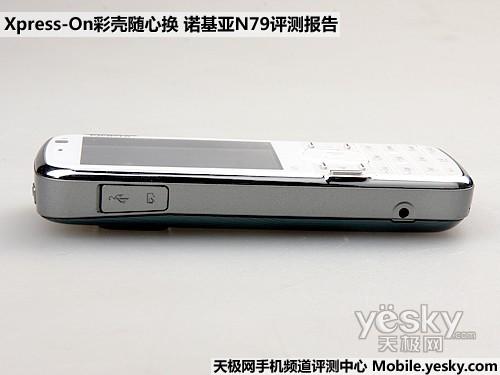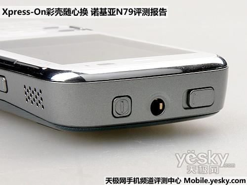 诺基亚N79的机身四周的接口设计的比较丰富,但分布比较分散所以每一侧都显得还是比较简单而合理的。