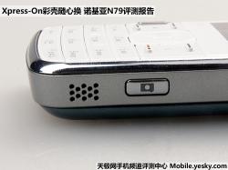 机身右侧则是音量调节键和拍照快门键,在右侧上下两端则为两个独立立体声扬声器声孔,这种设计在N85上也见到过,实际的外放使用效果还是不错的。