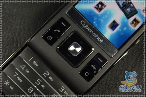 宽大的机身也给了索尼爱立信C905足够的空间设计按键,功能键区并没有什么特殊的设计,中间的方向键在拍照界面启动的时候还可以作为快捷键使用,这个在讲解拍照的时候我们具体再说。左右两侧各安排了三个功能键,都是比较常用的按键:左右软键、拨号挂机键、快捷菜单键和C键。