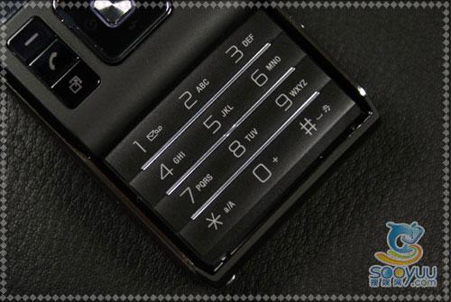 而数字键区域,采用了整块塑料做按键界面,每两行数字键之间有一条白色的边框间隔开,按键手感也非常舒适。在暗处,索尼爱立信C905按键的背景灯显示为白色。