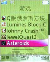 F305主打的功能就是游戏功能,配合屏幕上方的游戏专用按键,还可以将游戏画面横向操作,手机内置了动作感应器,游戏的时候只需要做出相应的动作,即可进行游戏。该机机身共内置了11款游戏,分别是:Jockey、Bowling、Jewel Quest 2、Tropical Madness、Asteroids、Lumines、Bass fishing、The Sims、Racing Fever、Johnny Crash Stuntman Does Texas、Quadrapop Robotics。其中Jockey(赛马)、Bowling(保龄球)和Bass fishing(钓鱼)是三款动作感应游戏。