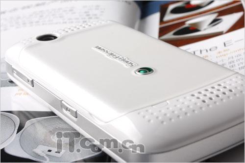 索尼爱立信F302以白色为主,而机身周围则设置了银色金属边框环绕其间,与导航键上的银色相互呼应,显得简洁而不单调。M2扩展卡槽被安置在了手机的顶部,顶部右侧还有一个手机挂饰孔。手机左侧安排了充电器/数据线/耳机三合一插口,手机右侧则是音量调节快捷键和手机拍照快捷键。
