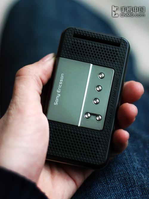 前面板上一共有五颗圆形小按键,横向排列的三颗是用户可以自定义频道的快捷键,而旁边竖向排列的按键则是调整频道使用的选择键,这样安排各位用户不需要掀开手机就可以直接操作收音机功能。