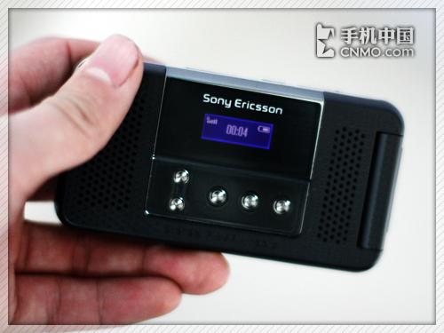前文提到了索尼爱立信R306拥有一块醒目的外面板,其实外面板上还有一个不算大的外屏幕,分辨率大概为96×32像素,除了可以显示时间和基本状态消息外,这里还是听广播时显示频道信息的地方。
