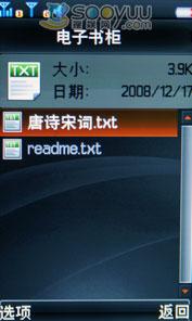 联想i60还内置了电子书功能,支持TXT格式的文本文件,可按名称、时间、类型、文件大小对书目进行排序,支持文件属性查询,支持页面快速定位跳转,支持字体大小、自动翻页、手动翻页/行、翻页速度、全屏的页面设置,支持插入书签。