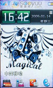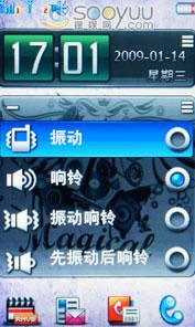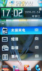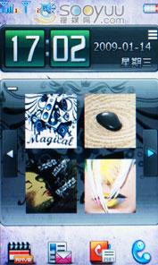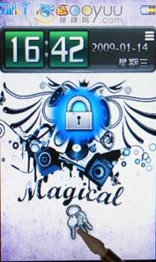 联想i60的魔幻桌面采用的是便捷直观的交互界面,待机时有可横向划拨的显示框。可以快捷更换桌面壁纸,显示音乐播放界面,显示日历,以及响铃方式和短信彩信未接来电等等。而且该机的屏幕解锁方式也很特别,是将屏幕底部的钥匙提到锁上即可解锁屏幕。