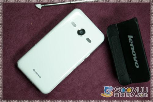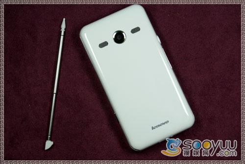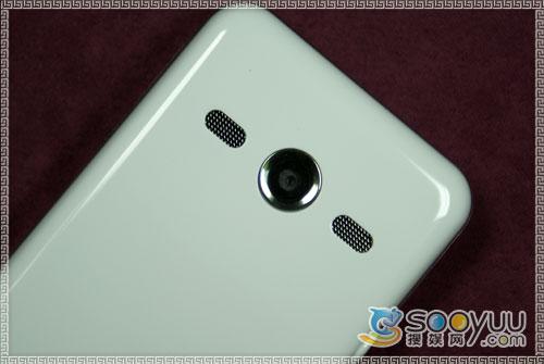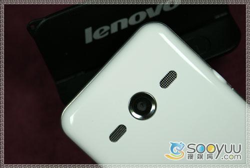 联想i60的机身背部有一枚200万像素的摄像头,但遗憾的是并没有闪光灯和自拍镜,也不支持自动对焦功能。摄像头的两侧是扬声器,在外放表现上还是相当不错的。