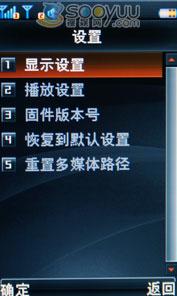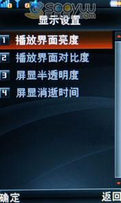 我们在联想i60的播放设置里可以看到该机是支持书签功能的,也可以查看播放历史。在显示设置里还可以调节界面亮度、对比度、半透明度和屏幕消逝时间。从这里我们还可以看到该播放器的固件版本为Barcelona-B V24。