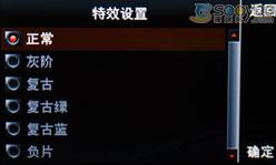 拍照设置里还可以看到该机支持太阳光等几种白平衡,灰阶复古等几种特效设置。支持数字变焦,支持相框拍摄。视频播放方面,该机也简单同样的白平衡和特效设置。
