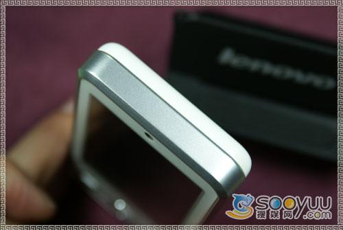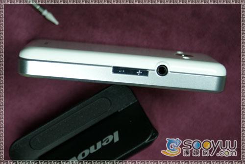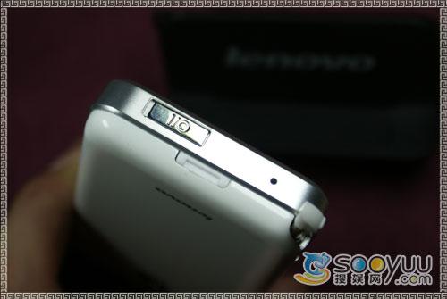 手机左侧有音量调节的快捷键,同时在进入菜单操作时可以当做上下键使用,弥补了没有方向键的不便。左侧还有该机的耳机插口,值得高兴的是联想i60采用的是3.5mm标准耳机插孔,并且随机赠送了一款入耳式高档耳机,这样标准化的接口带来的好处是不言而喻的,各类耳机、外放设备都可以顺利的连上联想i60。机身右侧则是由一个拍照的快捷键。