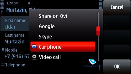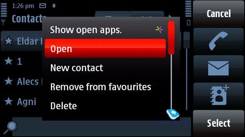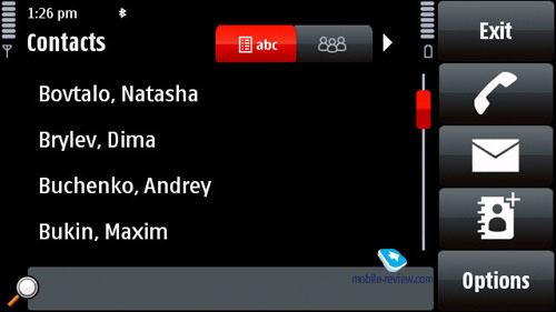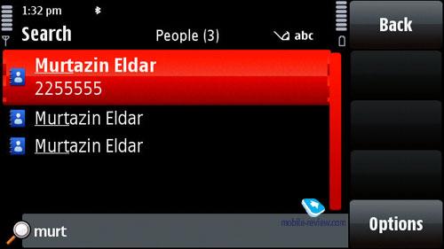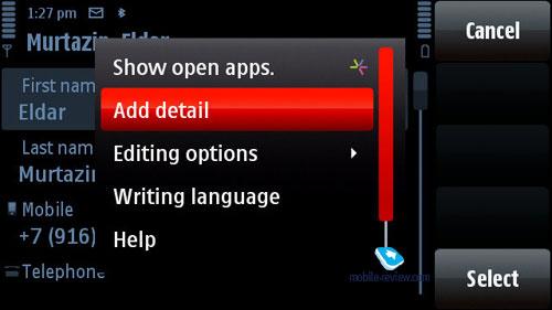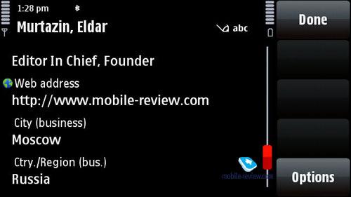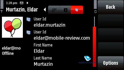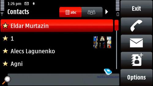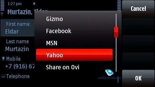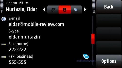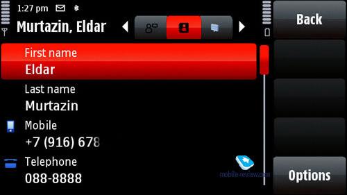 N97的通讯录现在可以有最喜欢的名单了,其中标有黄色星星和位于列表的顶部。但更重要的是,有一批新的项目可以让人去储存,比如是Skype和Facebook的名称等等。