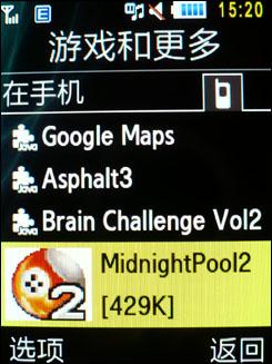 除了以上强大的功能,三星S7220还内置了多种实用性很强的程序。例如支持A-GPS的google地图,蓝牙V2.1支持立体声耳机,FM收音机,Java的扩展及TF卡的支持(支持SDHC高速卡)等,还内置了几款好玩的游戏,不过这些游戏只能玩一关,继续玩则需要付费 -_-!