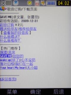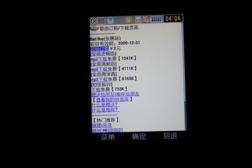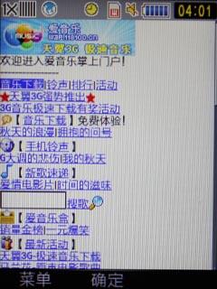 三星M609内置了中国电信丰富的3G应用,其中“爱音乐”是电信现在主推的服务之一,也是对三星M609音乐核心功能的补充。我们可以从天翼菜单启动爱音乐服务,该服务基于浏览器实现,主要是提供彩铃下载,同时也有音乐下载不过据少。