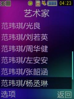 图为三星M609音乐界面