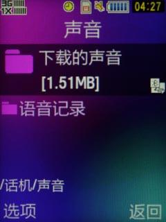 笔者下载了这首歌曲的流畅版,共1511KB,下载速度和一般的蓝牙传输速度相仿。下载后的音乐会出现在声音/下载的声音菜单下。