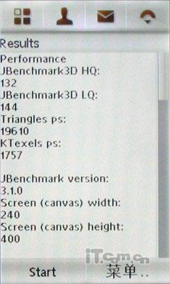 摩托罗拉A1210的屏幕已经由A1200时的QVGA(240×320像素)级别升级到了WQVGA(240×400像素)。26万色的TFT屏幕显示效果还是比较柔和,色彩的表现力真实,过渡均匀,看上去也不会过于刺眼。