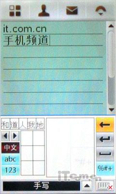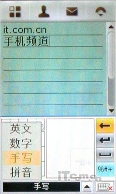 在A1210手机上,摩托罗拉为其搭载了第四代智能草书手写输入引擎,使得手机的手写识别能力得到加强。而我们也特意在编写短信的时候测试了一下这款手机的手写识别能力,输入基本的一段10多字的短语,大都能被识别出来,手写识别率还是相当不错的。在手写识别的时间上这款A1210在手写时会感到明显的停顿感,但是相对之前同系列机型来说还是有所提高。