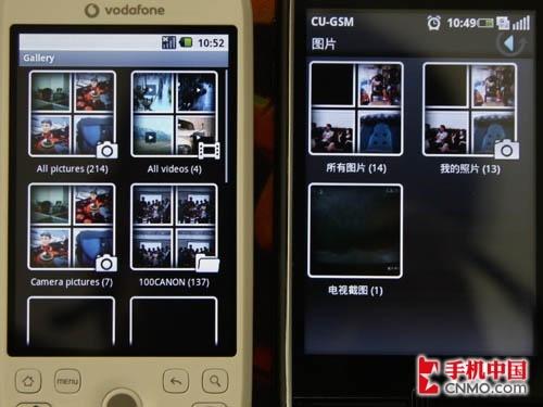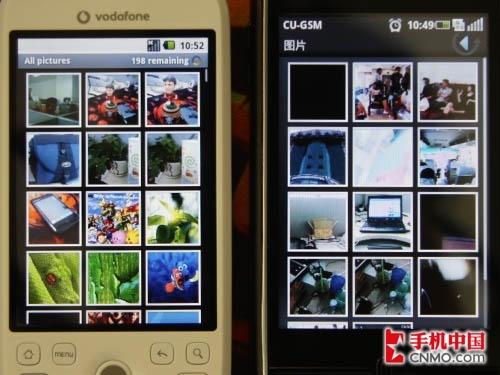 多媒体方面,HTC G2 Magic和联想Ophone相比,音乐功能UI差别较大,图片浏览则是完全继承了原版Android系统的风格。