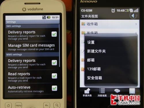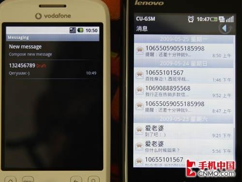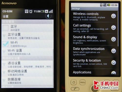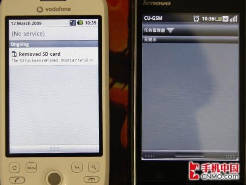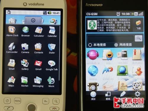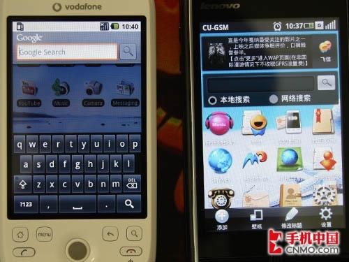 图为联想Ophone对比HTC G2