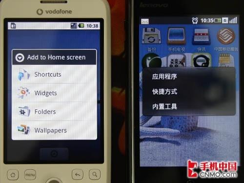 图为联想Ophone对比HTC G2 界面