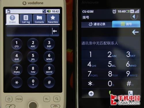 我们着重于联想Ophone系统UI方面的改进,由此也能看出联想Ophone针对国内市场特别的设计。同时在功能方面,我们会作简单的对比。
