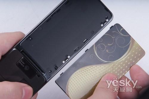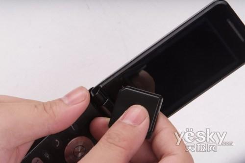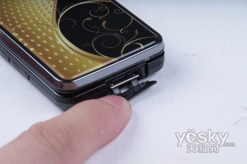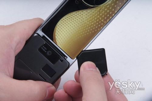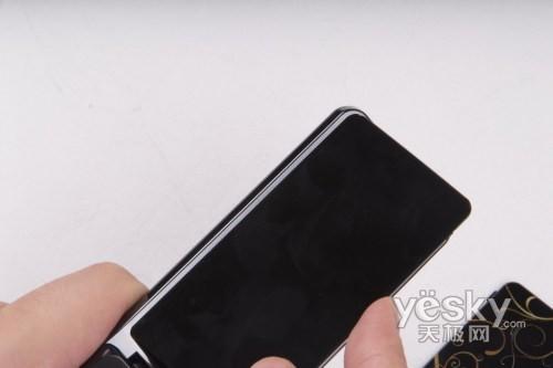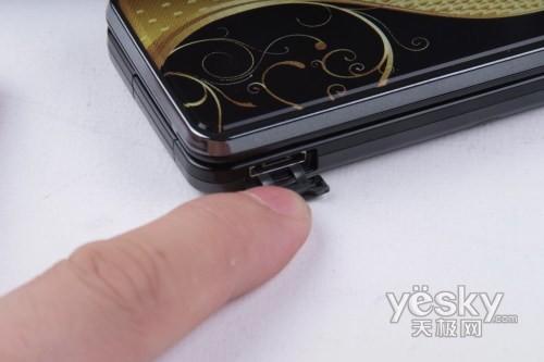SH6018c周边的功能键和插槽比较少,手机左边最上方是TF卡插槽,支持热拔插。下方是功能键和音量调节键,功能键是蓝牙开启键和外屏切换键。手机右边就只有耳机插口,数据/充电口则在最下方。SH6018c背面最上方是320万像素的摄像头,6010的小外屏同样也在SH6018c上出现。屏幕下是凹槽式的扬声器。