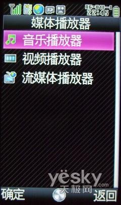 SH6018c拥有多媒体快捷键,一共有音乐播放器、视频播放器和流媒体播放器可以选择。其中音乐播放器和视频播放器基本可以满足平常需要,支持MP3音频文件和3GP视频文件的播放,配合SH6018c原装耳机,音乐播放效果也是相当不错的。