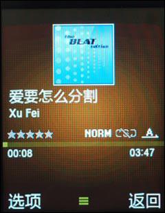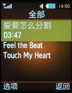 作为音乐机型,那么自然音乐播放要作为主要卖点了。三星M2710C的音乐播放也是颇为方便。在待机接口下可以通过导航键附近的音乐播放键进入音乐播放,或者通过手机右侧的快捷键来完成操作。进入音乐播放器内,分为最后播放的,全部,最近播放的,多次播放的,艺术家和流派多个分类,配合三星特有的音乐识别服务,提供不错的音乐体验。
