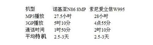 诺基亚N86、索尼爱立信W995主要参数对比: