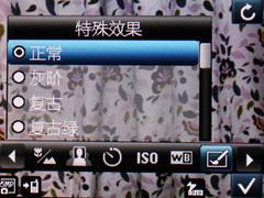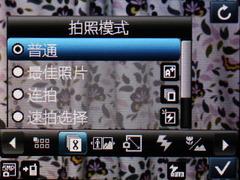 关于OPPO P51前面提到,其名称Real-Shot同索尼爱立信的Cyber-shot有些相似,其实在取景界面方面,OPPO P51也有借鉴Cyber-shot之处。OPPO P51的取景设置菜单也是横向显示,通过左右按键控制设定项目,这一菜单设置风格同富士数码相机的设置方式比较相似,因此比较容易上手。
