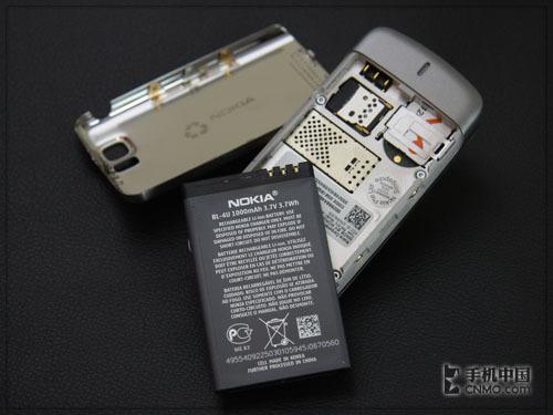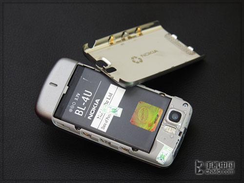 诺基亚6600i使用的电池为BL-4U,容量为1000mAh,与E66、8800系列所用电池一样,也是目前诺基亚所用比较主流的一款电池。由于电池扁平,面积较大,基本占据了诺基亚6600i背面绝大部分的面积。实测体验,如果电话较少,这块电池的续航时间完全可以达到3天的水平,还是比较满意的。