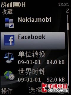 在诺基亚6600i的收藏菜单中隐藏着许多宝藏,包括搜索、Facebook等互联网快捷应用,增强了对互联网社交功能的使用便捷程度。