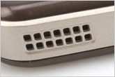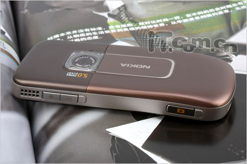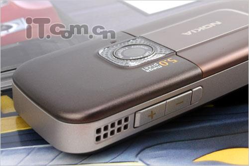 此次送测的诺基亚6720 Classic为栗棕色,另外还具有铁灰色版本。在机身亚银色的侧边上分布着一些常见的按键插槽:左侧下端为数据线和Micro SD卡插槽,被同一个保护盖所遮盖,旁边还有挂绳孔配置;右侧有音量调节键和拍照键;机身低端是电源接口以及3.5mm的耳线孔位。在诺基亚6720 Classic机身上方的左右两侧均分布着独立扬声器配置,可想象出其具有不俗的外放能力。