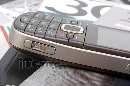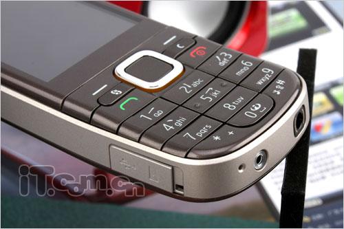 看到诺基亚6720 Classic的导航键时,细心的朋友不难发现表面具有银色边框的五向导航键下方采用的是橙色的透明材质,虽在色调上与沉稳机身不相搭调,不过在暗黑请款下其发出的光芒还是相当抢眼的。不足的是五向导航键操作起来反馈力不足,有很重的塑料感,不过这种情况没出现在数字键区上,操作起来还是很舒适的。另外键位间的空隙较大,特别是左右软件上方的空隙,非常容易藏下灰尘污物。