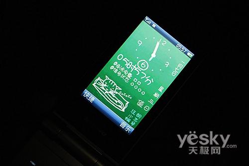 机身正面在待机时对女性朋友来说,可以省去一面镜子,好似“犹抱琵琶半遮面”一般。镜面部分同时负责显示手机信息,该机也延续了S700上的膜结构LED灯,十分炫目。