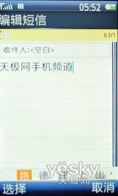 在短信方面,该机支持普通文字短信和多媒体彩信的收发。内置的中文输入法还是比较强大的,对于词语的联想和缩写检索,拿捏的比较到位,适合短信达人使用。