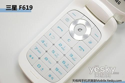 三星F619共分黑白两款颜色,本次送测的F619是甜美的纯白色,清纯的白色搭配银色的装饰银边,以及鹅卵石拜机身轮廓,非常适合女性朋友使用,相对应的黑色款则适用于男性朋友,三星F619的出现,让手机市场上又多了一组情侣手机的经典之作。