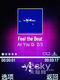 该机内置三星音乐播放器,虽然支持背景灯光播放,但是对于后台播放的缺失,对于一款3G手机来说,确实有些遗憾。而内置的播放器支持播放模式的选择、当前音乐应用以及列表播放,用于日常休闲消遣没有问题。