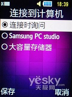 在界面方面,该机延续三星传统风格,12宫格的主菜单平铺出主要功能,待机桌面可以显示或关闭钟表和日历,五维导航键支持快捷操作。