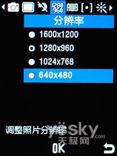 三星F619搭载了一颗200万像素的摄像头,虽然像素偏低,但拍照功能还是相当丰富,最高支持1600×1200分辨率的相片,可调节白平衡、曝光测量、效果等功能,用于日常自拍娱乐没有没问题。