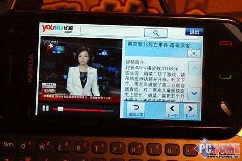 当然,在观看在线流媒体方面,我们也可以通过Ovi Store下载免费的优酷和土豆的手机客户端进行观看,占用的资源相对更少,视频分类也更集中。如下图中,我正在通过优酷的手机客户端观看番茄台的新闻。