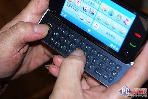 而反过来我们看N97 mini,尽管机身尺寸上有所缩短,但N97 mini的键盘却回归到了E90 (参数 报价 图片 论坛) 式的横平全幅设计——也就是说,N97 mini的数位键盘实际上是要比N97拉大了不少。那么我在使用的时候就带来一个问题:一般像我这样习惯全键盘操作人,都是双手捧着机器用两个拇指操作,而N97 mini的键位跨度太大,在使用时间长了以后,会让我的双手感觉比较累。所以我个人觉得,在键盘设计上,是N97更加合理,而且N97的键帽手感偏软,相对N97 mini要更加舒适一些。