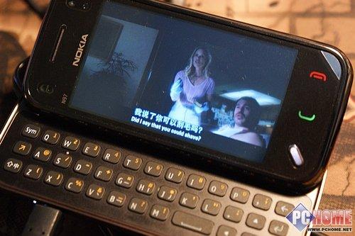 在视频播放上,我进行了一个比较变态的测试:我用N97 mini播放RMVB格式的视频文件《寻找午夜之吻》,分辨率为608*344,码率527Kbps。分辨率和N97 mini相差不多,码率比较高。N97 mini在播放的时候,略微有些跳帧的情况出现,而当我使用飞行模式关闭网络信号以后,播放就比较顺畅了。那么这一点上来说,N97 mini与N97在机能的表现上也确实相差不大。而在视频画面的表现上,N97 min在细节和层次的表现上还是不错的。