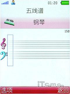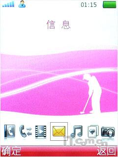OPPO A201的屏幕选用的是一块可视面积为2.4英寸的TFT显示屏,分辨率为主流的QVGA级别(320×240像素)。OPPO A201为用户提供了两款主题,一款是较为普通的12宫格菜单界面,响应机身设计,主题也呈粉色调,加上待机界面上那只可爱的小熊玩偶对于女性朋友来说还是具有一定的吸引力的。而OPPO A201的另一款主题则较为特别,并不是以12宫格设计,而是配合上富具动感的运动界面。该动感界面虽能配合粉色的外观设计,不过内容确实以运动作为题材,或者这是为了响应即将到来的亚运会吧。若是用别的主题相信也会有不错的效果。