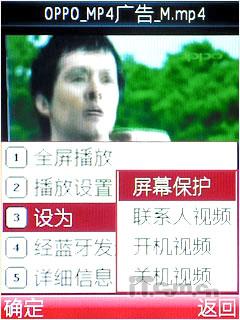 在播放视频时,用户可设置全屏播放,不过碍于OPPO A201的屏幕可视面积并不大,因此难以为用户在欣赏视频时带来视觉冲击效果。用户也可将视频文件设置为屏幕保护或是联系人视频等功能。